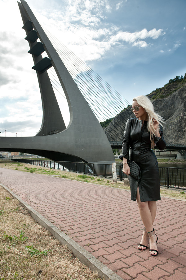 This dress should be initially shirt, but after trying I leave it as ultra-short dress. I also made under-knee leather "socks" to my favorite Chanel boots so it looks as high boots. How do you like it?