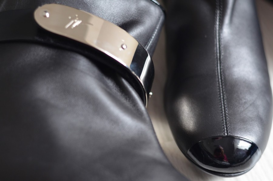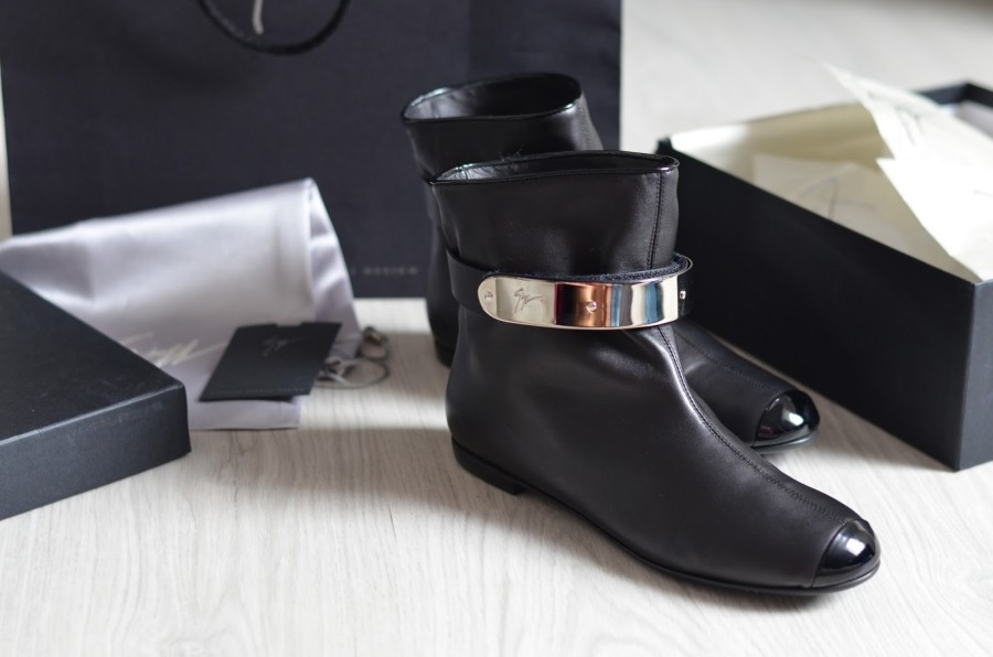 Last night I came back from my work trip to Milan where I was with clients for shopping. There was of course a lot of great things, but I tried to hold back and actually buy things only from my must haves list. So I bought the very practical things for the coming winter. For example mohair sweater. I was also looking for an oversize coat , but most look like I inherited it from some giant. This has great length and is really special, this soft and plush. I also wanted something other than black, this will be perfect with the leather and under it I can thread without problems the leather jacket . Another super catch was the t-shirt Yves Saint Laurent with YSL logo. I was looking for it so long time, but there are only fakes everywhere. This is what I found for only 80EUR in outlet. What I mainly wanted to buy in Milan were the biker boots from Gianvito Rossi, but after testing I found that they were too high for me and reduce my legs. Then I visited the Giuseppe Zanotti boutique in Rinascente and my eye fell on 'intergalactic' boots that are so very special that I had to try. If I will saw it somewhere on the internet, I probably would not have to bought it , but after trying I was thrilled! People who walk around wanted to try them also and I was there so little like the show. It was the last piece at all, so I did not hesitate for a long time and bought it. They have a special shape, the tip is made of shiny leather, it's a similar style such as Chanel produced. But the ususper is a metal buckle which is engraved brand logo .
