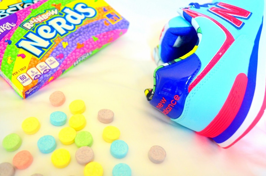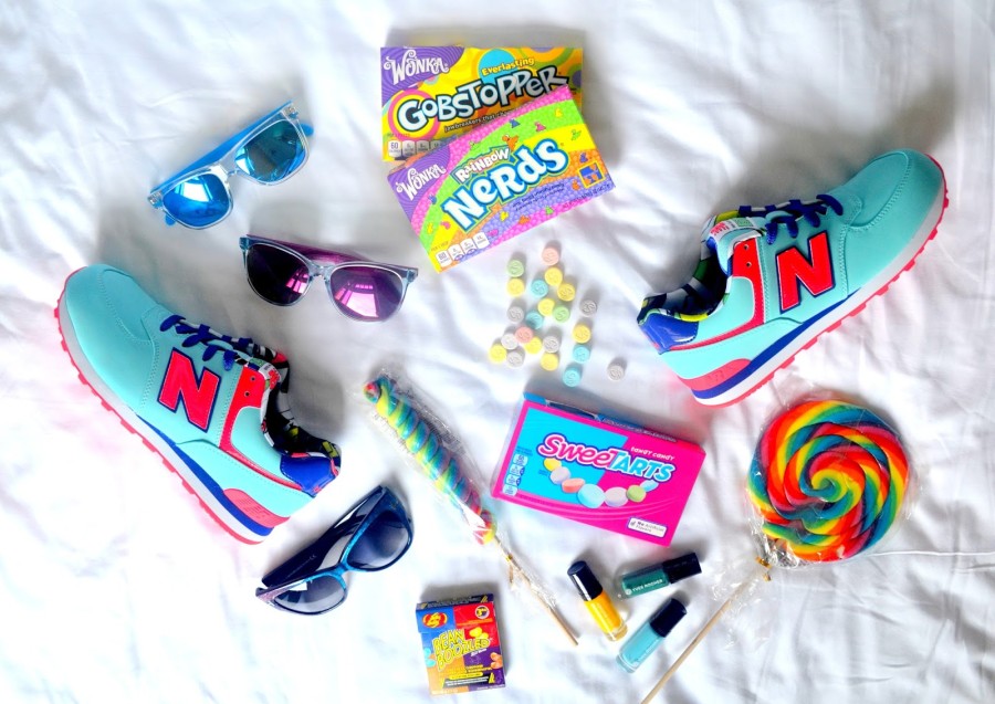 Dnes něco více barevného:) Nevím, na čem ulítáváte vy, ale já rozhodně na bonbónech. Cucacích, žvýkacích, je to jedno. Určitě znáte obchod Candy Store (pokud ne, tak věřte, že jste dodnes o hodně přišli), tak víte, že nabízí super pochoutky z USA a Anglie. My jsme si na cestu s Martinou samozřejmě taky musely pár věciček od nich přibalit a za mě určitě doporučuju Nerds od Wonky:) No a v neposlední řadě perfektně ladí s crazy New Balance teniskami z Footshopu. Prostě sweet!