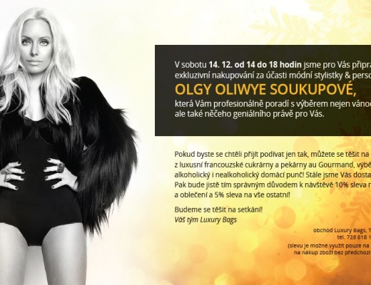 Ráda bych vás všechny pozvala tuto sobotu 14.12. na Vánoční nakupování se mnou, jakožto stylistkou, které se uskuteční v butiku Luxurybags, který nabízí luxusní kabelky, doplňky a nově i oblečení. Jejich sortiment si můžete prohlédnout nejen na jejich webu…