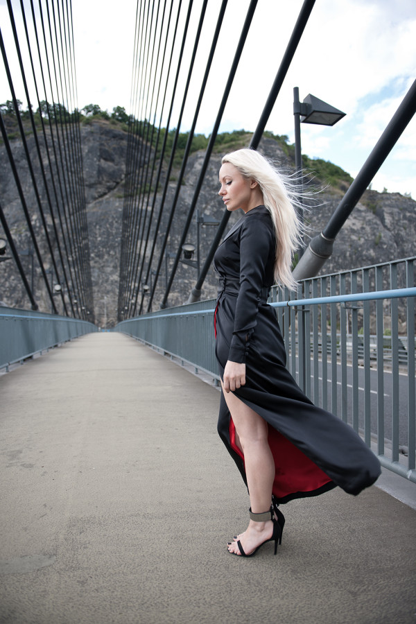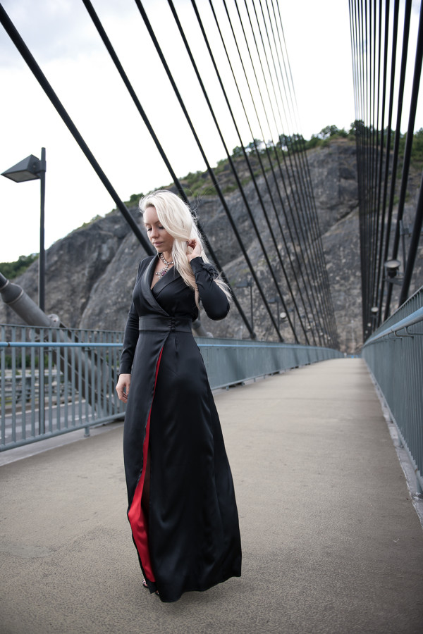 This beautiful dress I had designed for special occasions and for now it´s waiting for that special evening. From inside it´s made from a red silk and it´s beautifully undulating while walking.