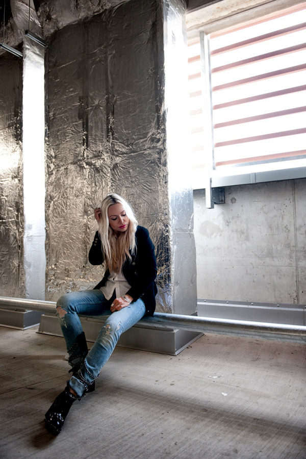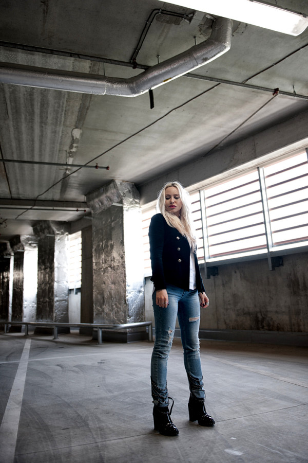H&M distressed jeans // SOFIA RAFAELI army blazer & white shirt // CHANEL runway chain boots // MICHAL HEJNY custom made rings & bracelets